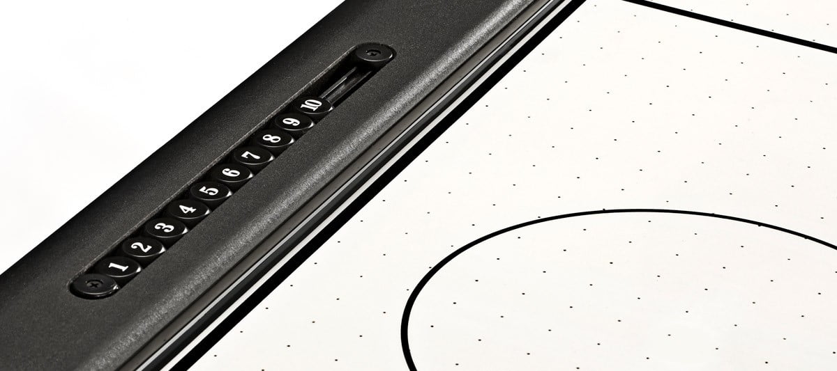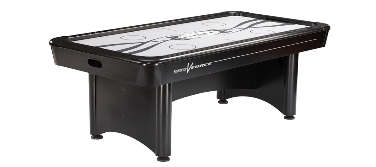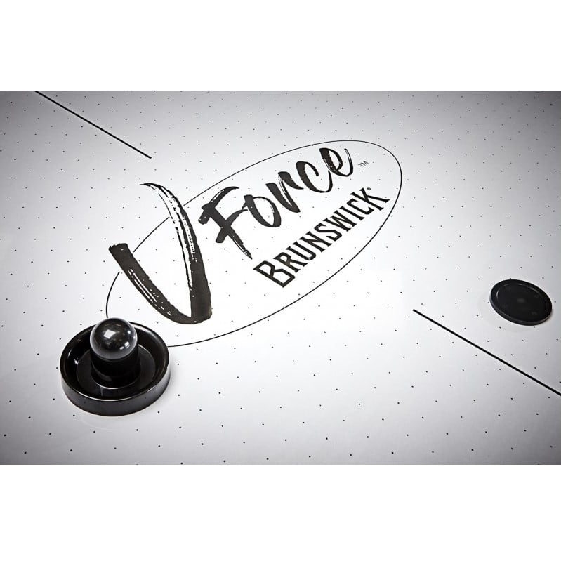 Exciting table top graphics and logo State-of-the-art embedded abacus scoring system Super slick, scuff-proof “ice” provides exceptional play Cool black mallets are easy to control for precise shots on goal Durable aluminum rails with powder-coated metal corners Adjustable leg levelers guarantee a perfectly horizontal playing field Dimensions: 83″ L x 30.5″ H x 41” W Seven-foot table size Two mallets and four pucks included with each table kit